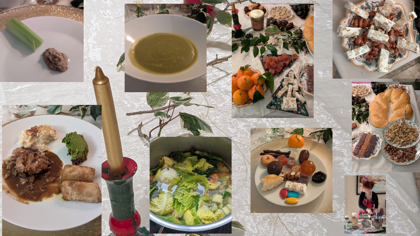 Lucette nous décrit le gros souper provençal. Vous retrouverez les recettes à la fin de ce troisième tome. Et pour vous prouver qu’elles sont bonnes, malgré le peu d’attrait que leur nom nous donne, je rajoute quelques photos de mon gros souper du Noël 2025 à la mode mémé Lucette.